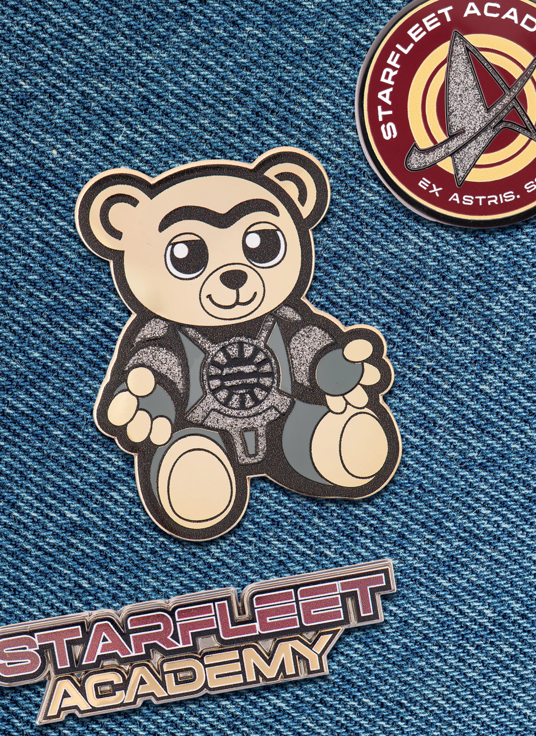 This limited-edition enamel pin set for Star Trek: Starfleet Academy centers around Scrap, the stuffed bear belonging to Caleb Mir. The collection features three pins inspired by the character’s childhood toy and the memories it represents throughout the series.
